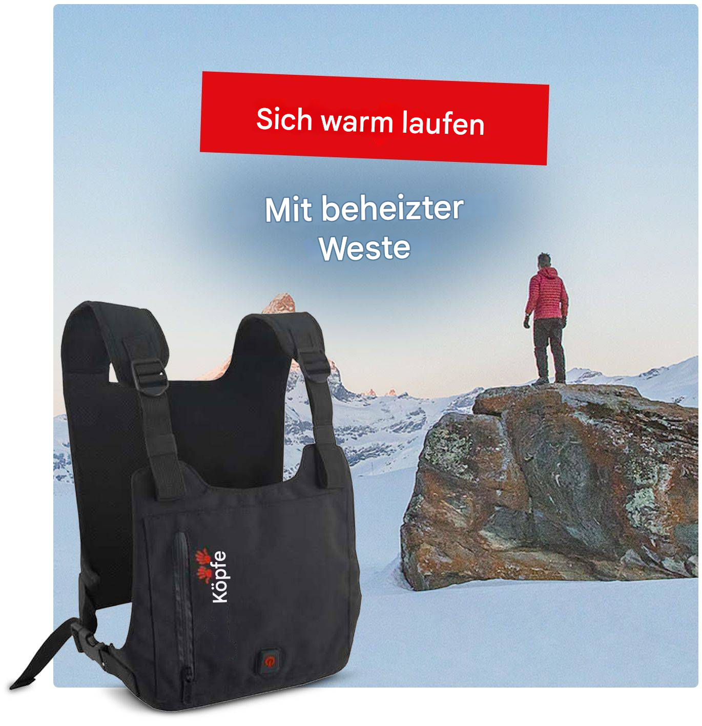 Die beheizte Universalweste benötigt zum Heizen eine Powerbank, die das Heizelement im Inneren der Weste mit Energie versorgt.