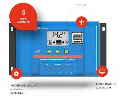 Laderegler PWM Victron Energy LCD und USB 12/24V 20A