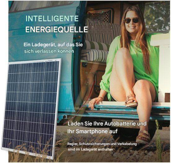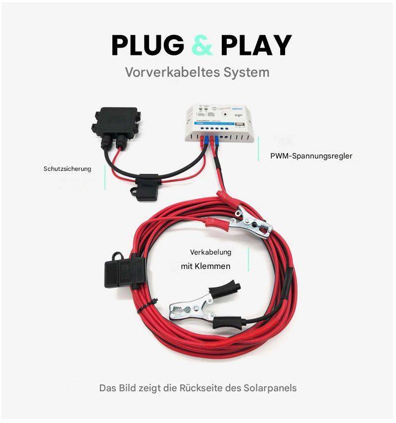 Maximale Leistung bis zu 115W (6,08A) - Komplettes Solarsystem zum Laden von 12V-Batterien.