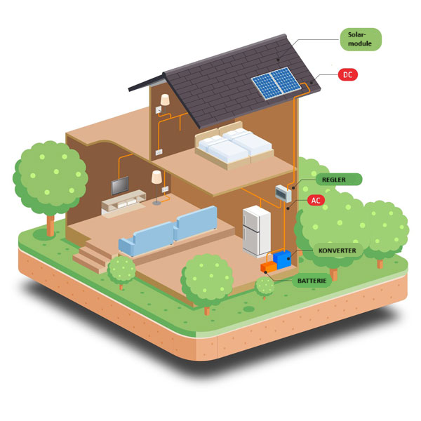 Wartungsfreies netzunabhängiges System. Saisonale Stromversorgung für LED-Beleuchtung, Handy, Tablet, Radio, Laptop, TV, Kühlschrank der Energieklasse E-F (nach altem A++ Standard), Handwerkzeuge.