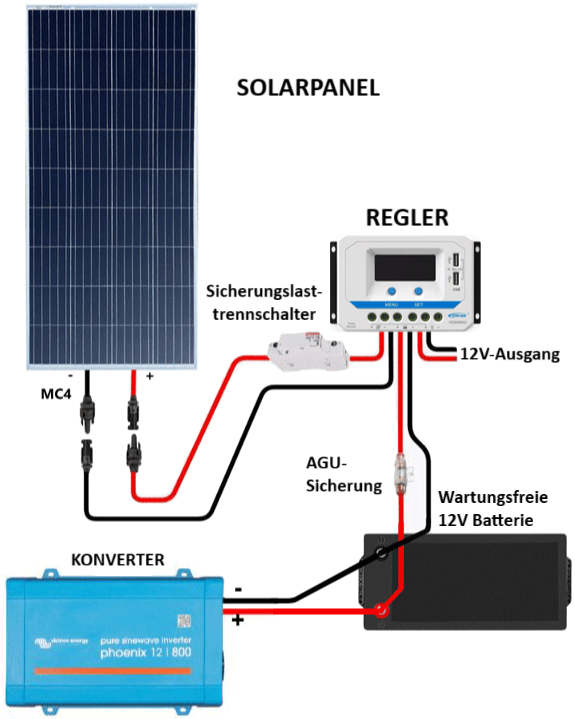 Insel-Solaranlage 12V 250VA 240Wp 100Ah