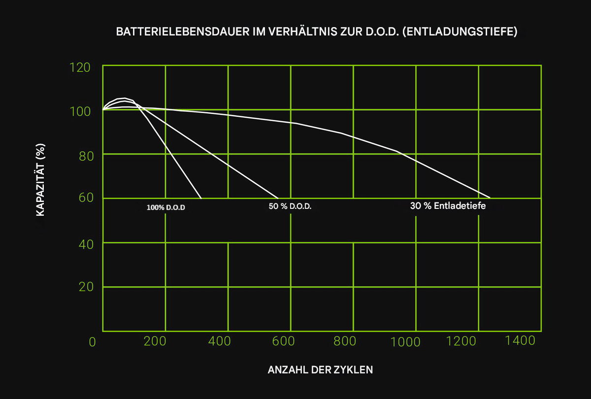 Wartungsfreie VRLA-Technologie (Valve Regulated Lead Acid), lange Lebensdauer und Stabilität bei hohen Umgebungstemperaturen. Gute Erholungsfähigkeit nach Tiefentladung.