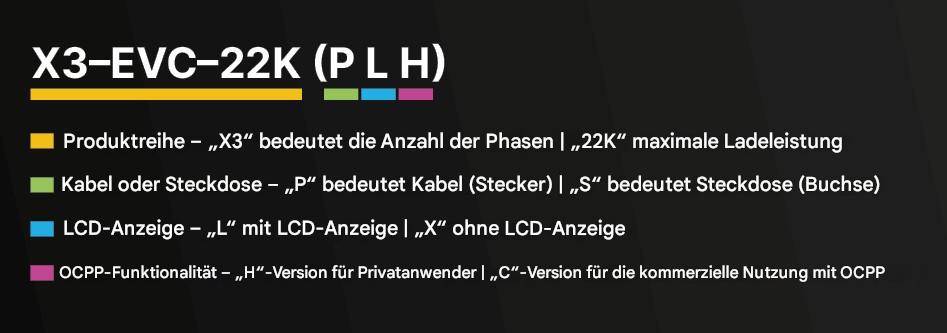 Verfügt über ein LCD-Display, unterstützt PLC-Kommunikation, WLAN, RFID (inklusive 2 Karten), CT-Sensoren für dynamische Leistungssteuerung und intelligente Lademodi (Green, Eco, Fast, Timer, Smart). Ideal zur Maximierung der eigenen Solarenergie und zur Reduzierung des Netzbezugs.