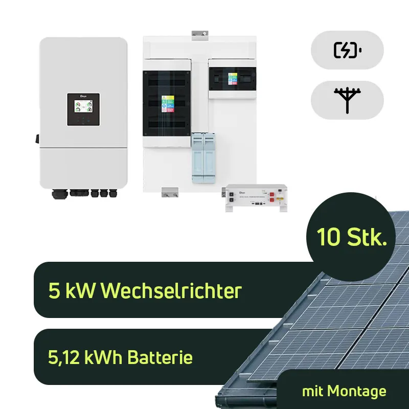 Dieses leistungsstarke Komplettsystem vereint erstklassige Technologie und höchste Zuverlässigkeit für Ihr Zuhause: Die hocheffizienten LONGI Hi-MO X10 Scientist Module mit elegantem schwarzem Rahmen garantieren exzellente Leistung und maximale Solarerträge. Das smarte Herzstück der Anlage bildet der bewährte Deye Hybrid-Wechselrichter, der im nahtlosen Zusammenspiel mit dem sicheren und langlebigen Deye LiFePO4-Batteriespeicher Ihre Energieversorgung rund um die Uhr intelligent steuert – für maximale Unabhängigkeit inklusive integrierter Notstromversorgung.
