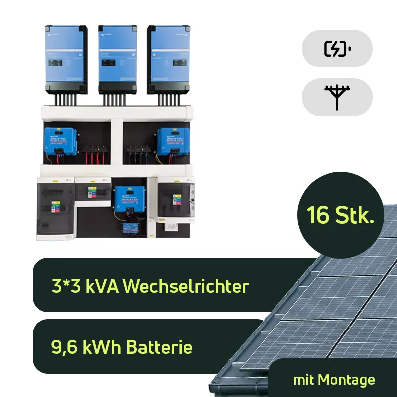Hybrid Victron Energy 8 kWp 9,6 kWh 3-Phasen-Schlüsselfertiges System